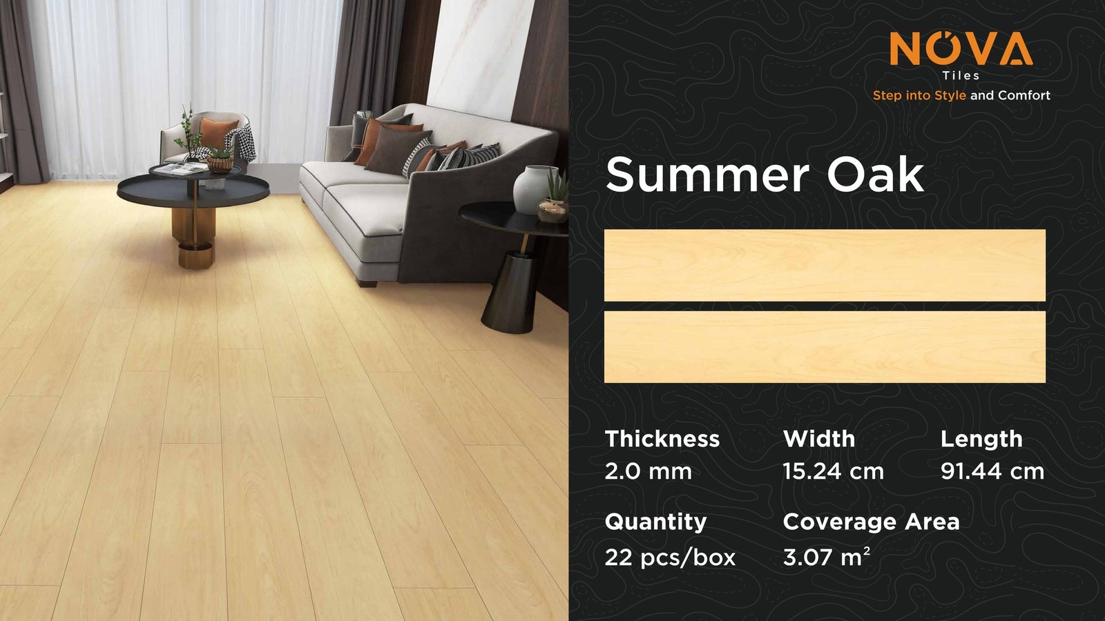 Dengan spesifikasi dan keunggulan tersebut, lantai vinyl dryback NOVA adalah pilihan tepat bagi Anda yang ingin mempercantik ruangan dengan biaya terjangkau namun tetap berkualitas tinggi.