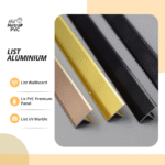 - Kuat & tahan lama: aluminium tidak berkarat, tidak melengkung seperti lis plastik tipis.