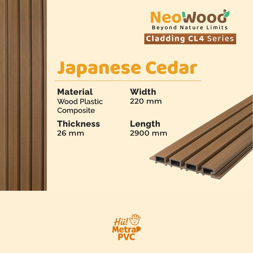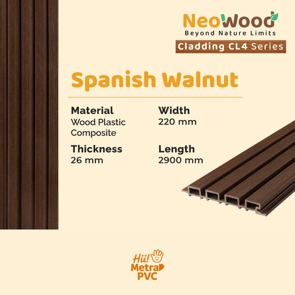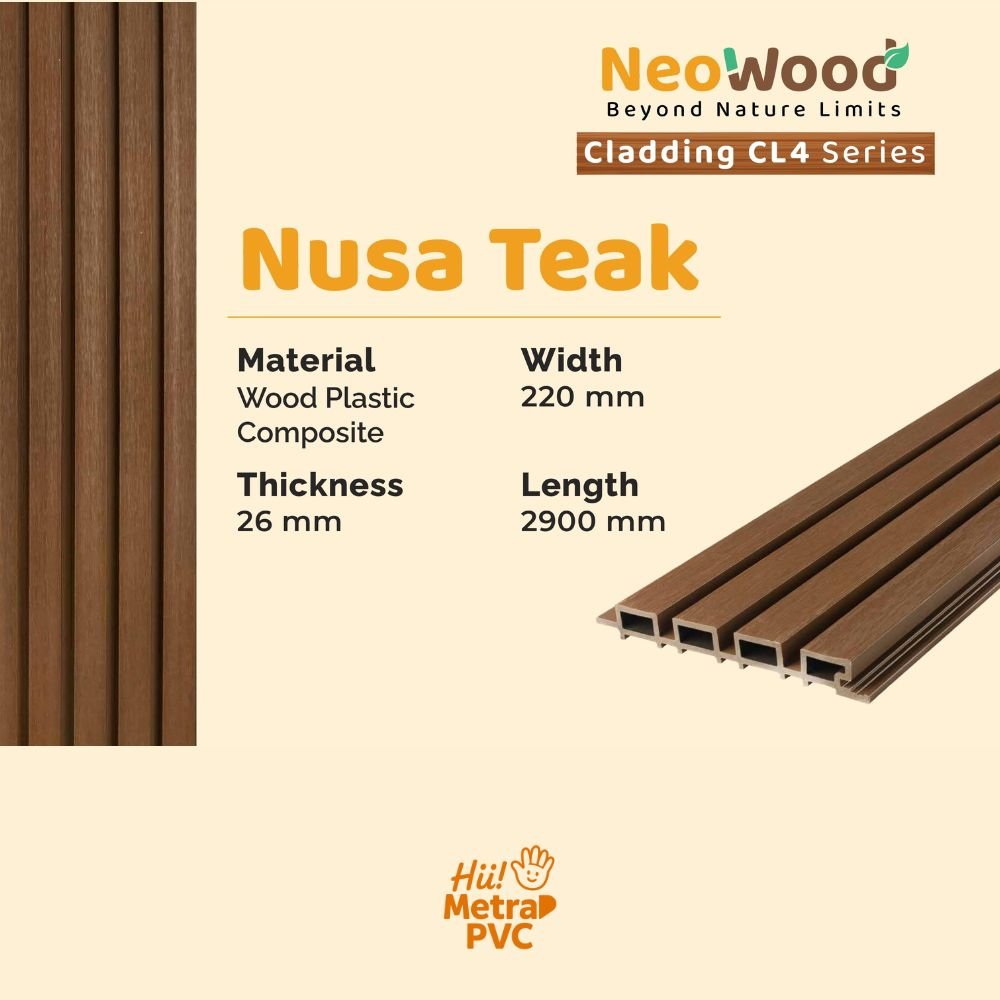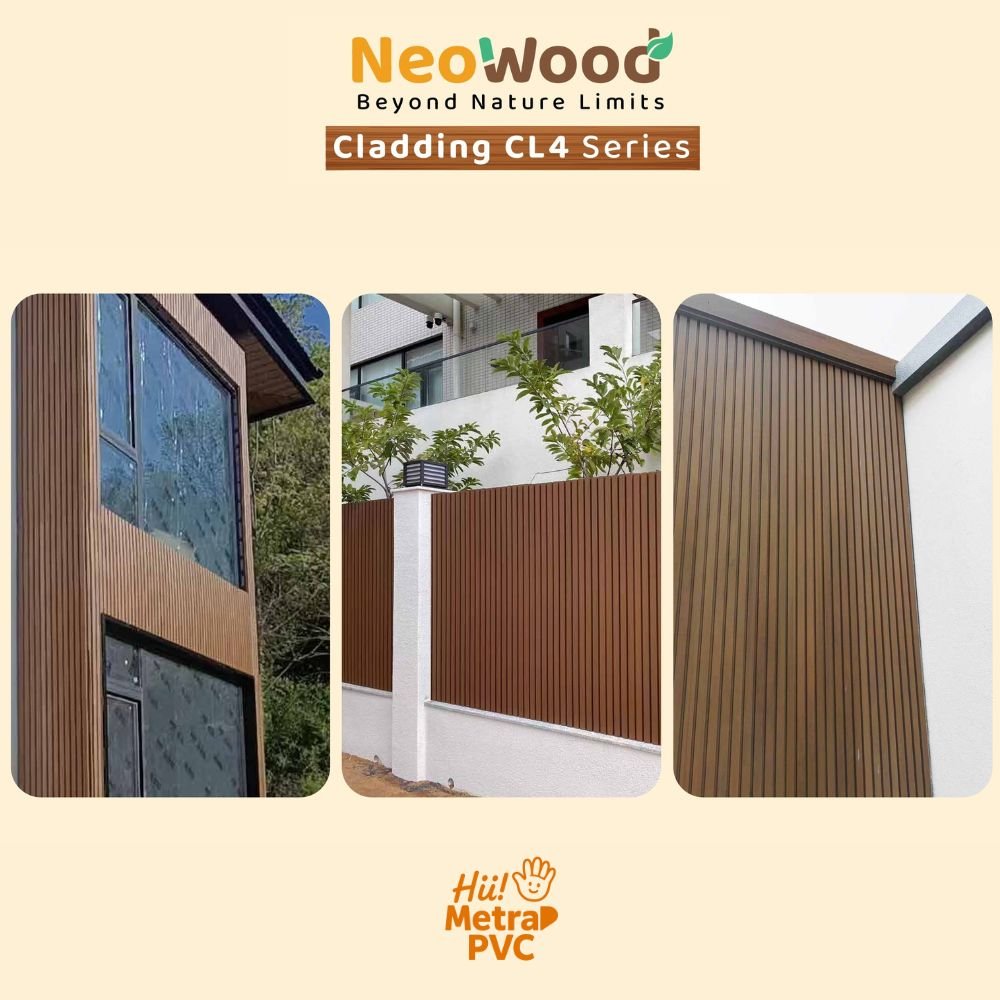 Menghadirkan keindahan alami kayu dengan teknologi Wood Plastic Composite (WPC) yang tahan cuaca, anti rayap, serta minim perawatan. Neowood Cladding CL4 Series sangat cocok digunakan untuk dinding eksterior, pagar, maupun fasad rumah modern sehingga tampil lebih mewah, tahan lama, dan bernilai tinggi.