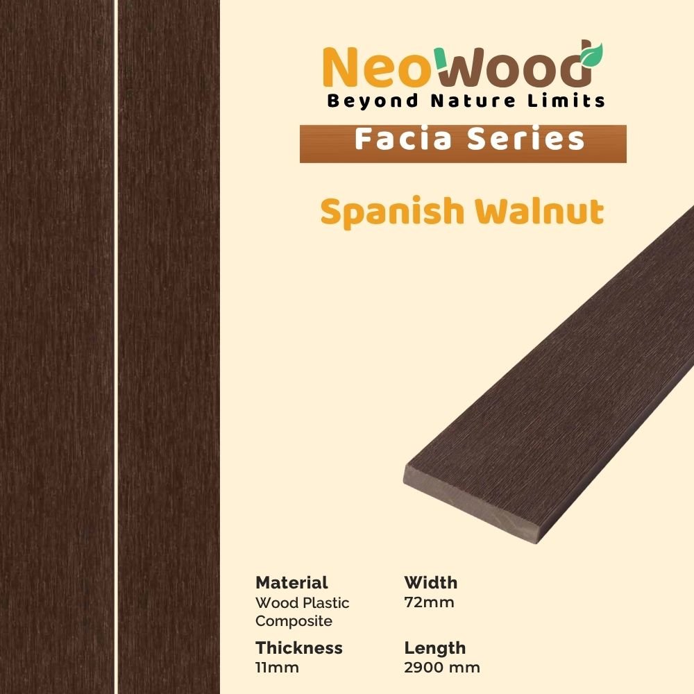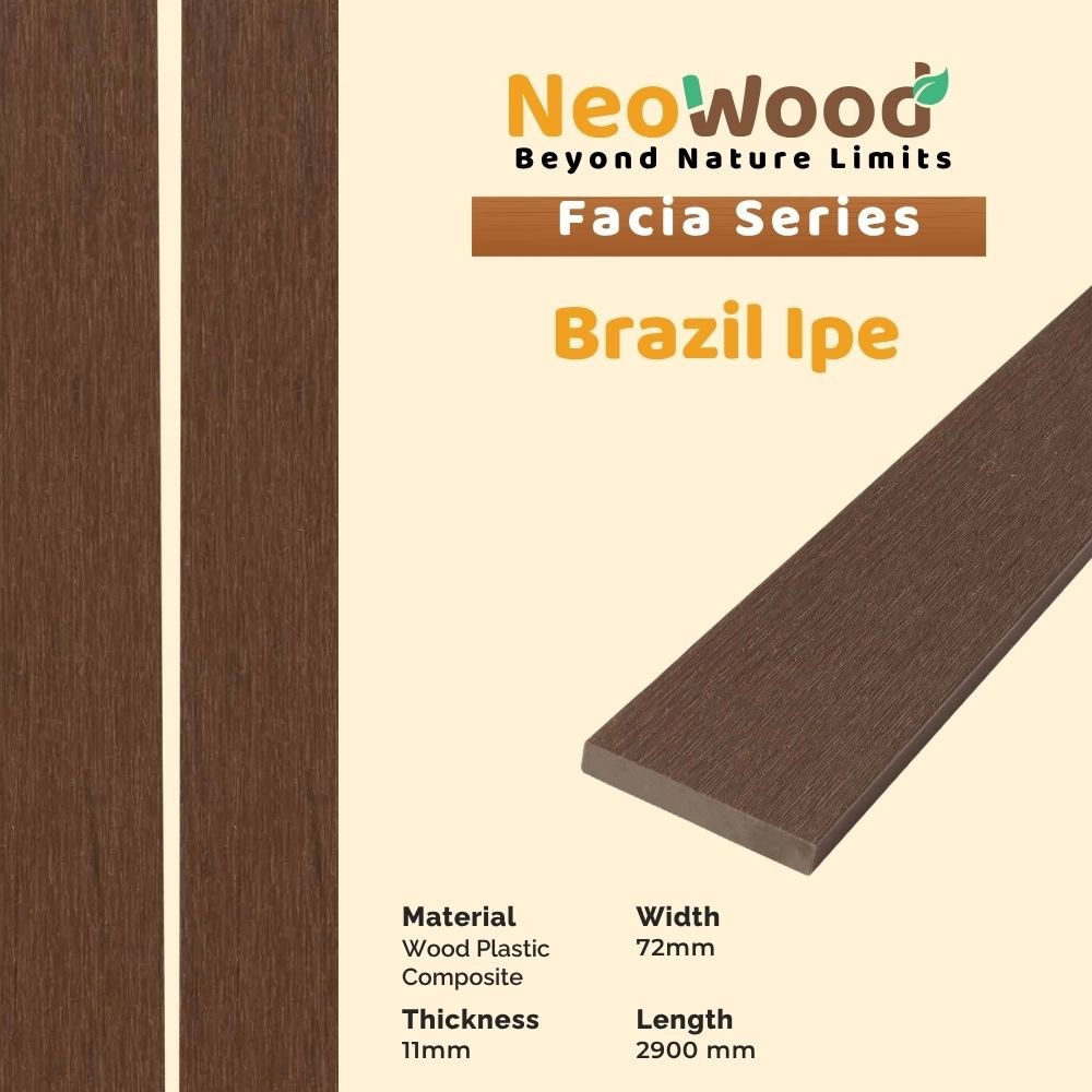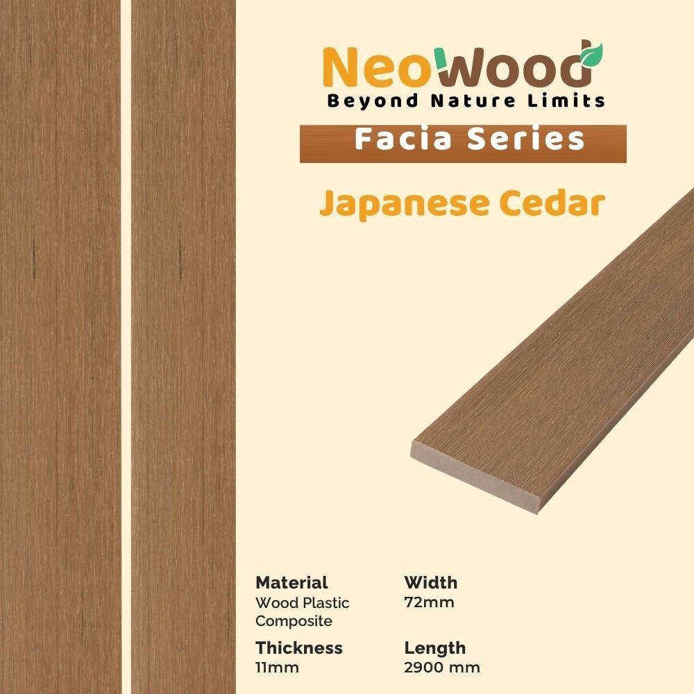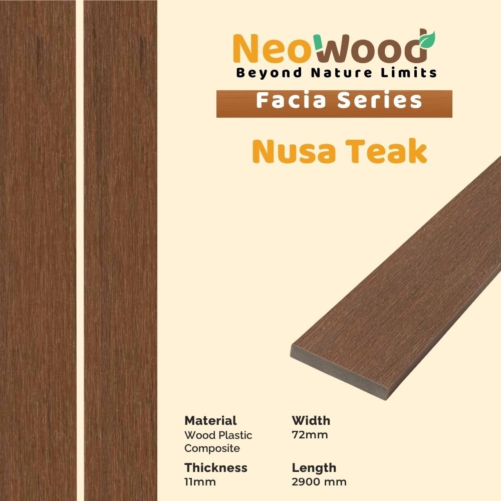 Fascia Series terbuat dari material WPC berkualitas dengan ukuran panjang 290 cm, lebar 7,2 cm, dan tebal 1,1 cm.