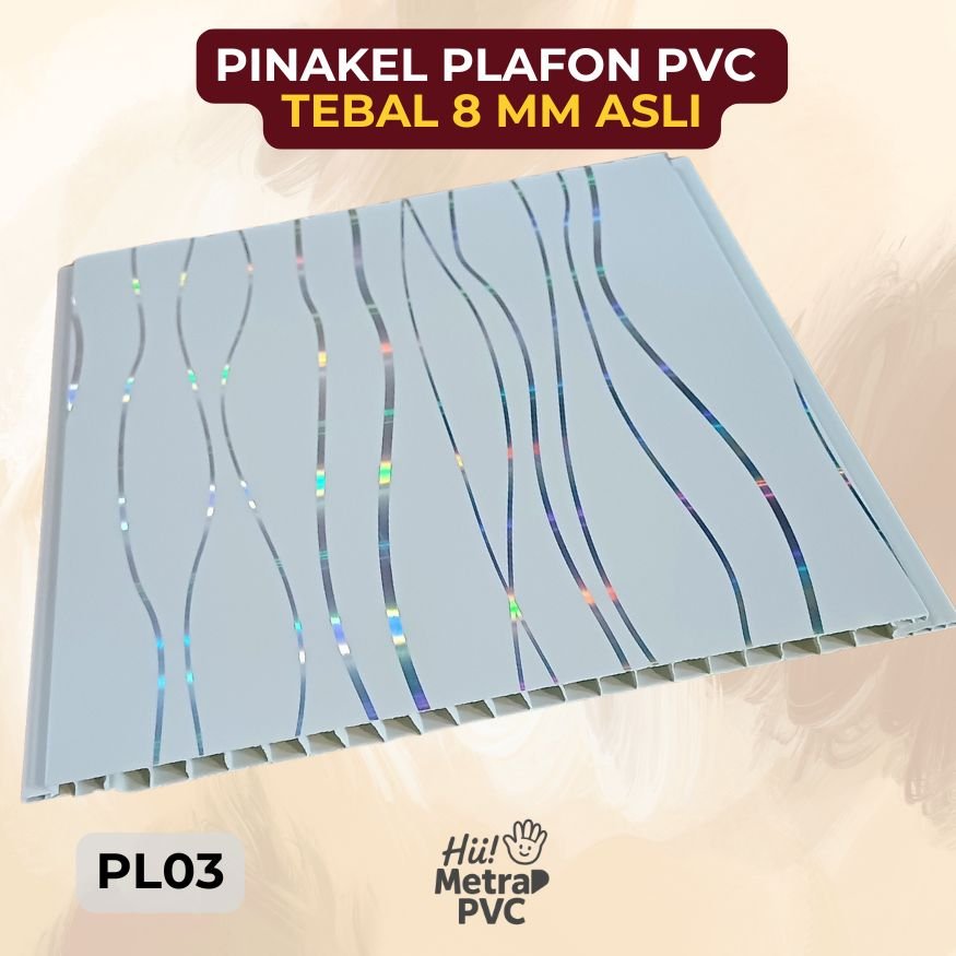 - Pinakel PVC – varian premium dengan finishing Glow dan Matte, ringan dan mudah dipasang, tersedia dalam berbagai motif dan warna.